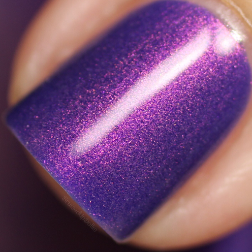 An indigo purple creme base with delicate but intense pink to gold to red shimmer.